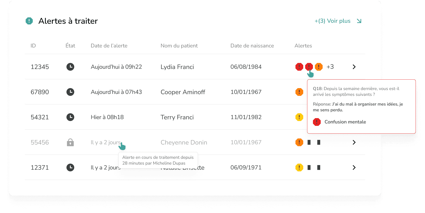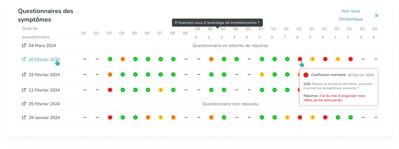 d'amélioration de l'état de santé des patients grâce à la réaction et l'anticipation des symptômes.